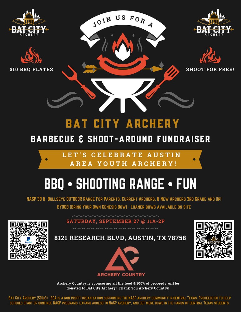 Join us at Archery Country on September 27th to celebrate Austin area archery! 11-2pm. There will be BBQ, games and lots of fun! BYOB (Bring your own Bow! )